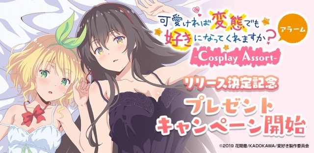 商品名 :可愛ければ変態でも好きになってくれますか? 「古賀唯花」 1/8スケール 塗装済み完成品フィギュア キャラクター:古賀唯花 仕様 :PMMA (PVCL)塗装済み完成品 スケール :1/8 約105mm 原型製作 :モワノー 小売価格 :¥14,500 (税抜き) 予約開始19年夏より放送開始となるTVアニメ『可愛ければ変態でも好きになってくれますか? 』。 本作を古賀唯花がジャックし、『可愛ければ変態でも唯花を好きになってくれますか? 』が放送決定。 詳細は 公式サイト をチェック。 ※エイプリルフールの可愛ければ変態でも好きになってくれますか? 第3話 恥ずかしがりやのシンデレラ!? アニメ 実は慧輝のペットになりたい朱鷺原紗雪、実は慧輝をペットにしたい古賀唯花。本性を見せ